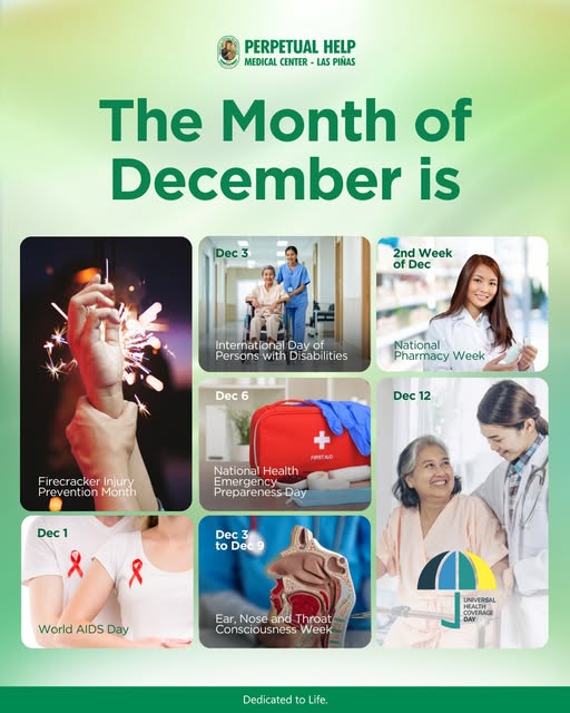 Perpetual Help Medical Center – Las Piñas dedicates this entire month to raising awareness across crucial topics, including Firecracker Injury Prevention Month, World AIDS Day, and Universal Health Coverage Day.